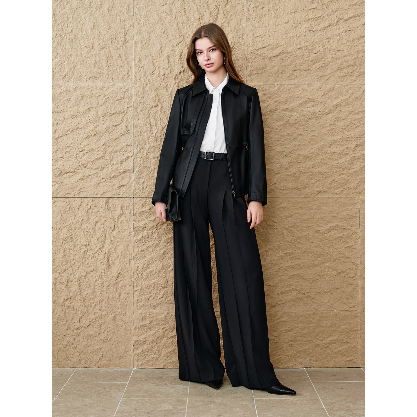INSUN恩裳专选2025秋季复古翻领绵羊皮机车夹克9C65309160