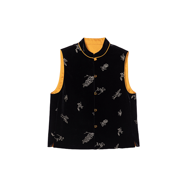 Lumsonare琅颂2025冬季国风黑金绣花丝绒马甲 9CY5501020