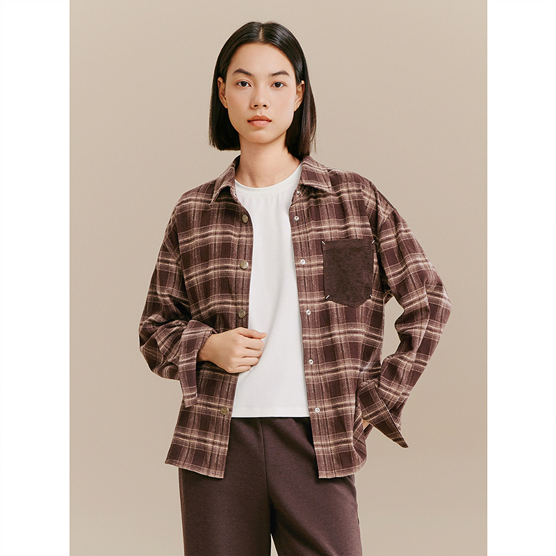 XII BASKET十二篮专选25冬新款时尚休闲宽松舒适百搭格子上衣咖啡色衬衫7C65530010