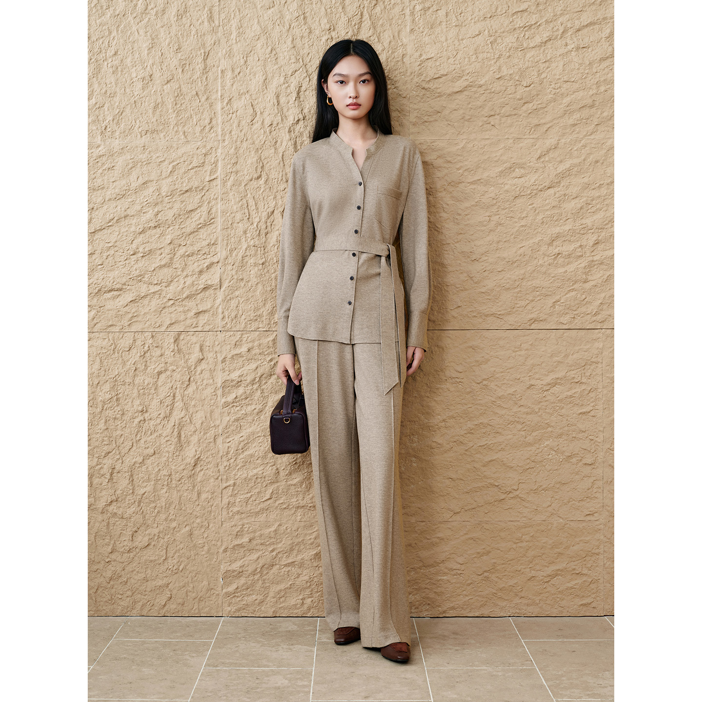 INSUN恩裳专选2025冬季立领收腰弹力美丽诺羊毛长袖衬衫9C65530190