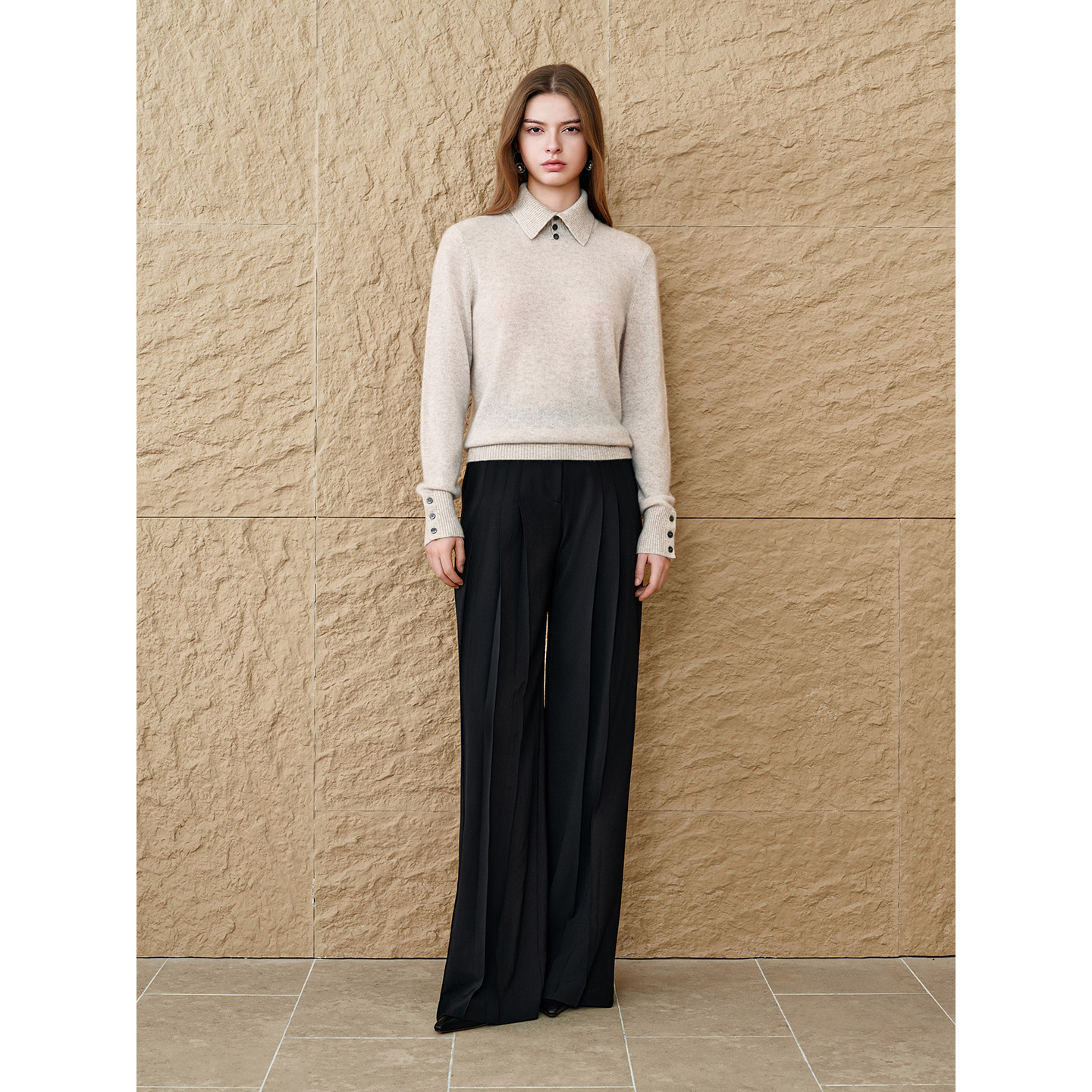 INSUN恩裳专选2025冬季100%山羊绒翻领设计感显瘦羊绒衫9C65506120