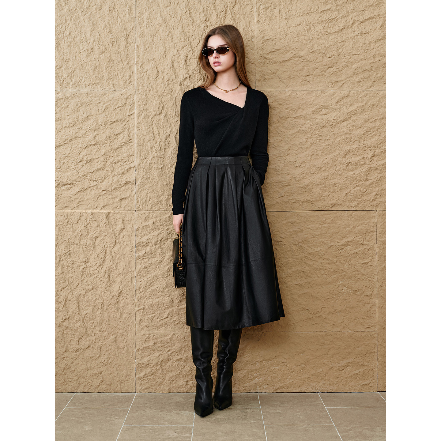 INSUN恩裳专选2025冬季翻领绞花宽松落肩美丽诺羊毛衫9C65506150