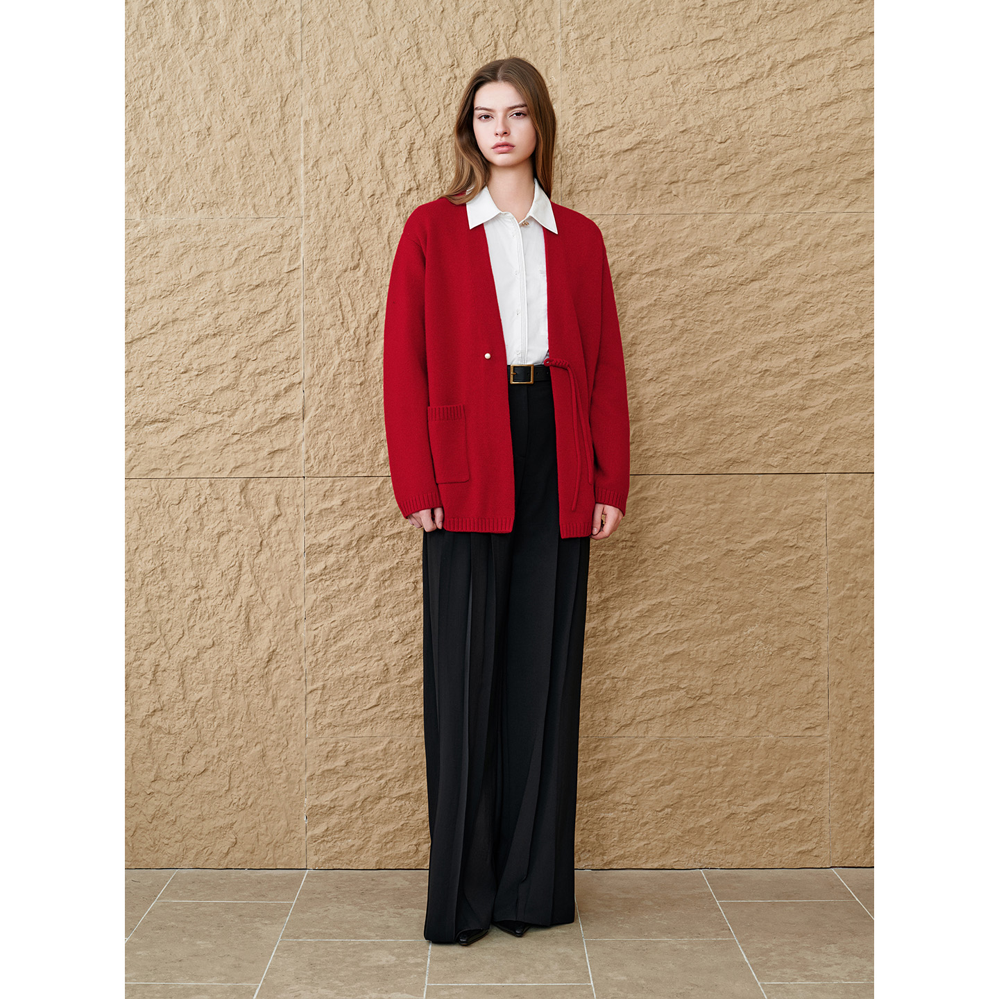 INSUN恩裳专选2025冬季新中式宽松落肩一手长羊毛衫开衫9C65506170