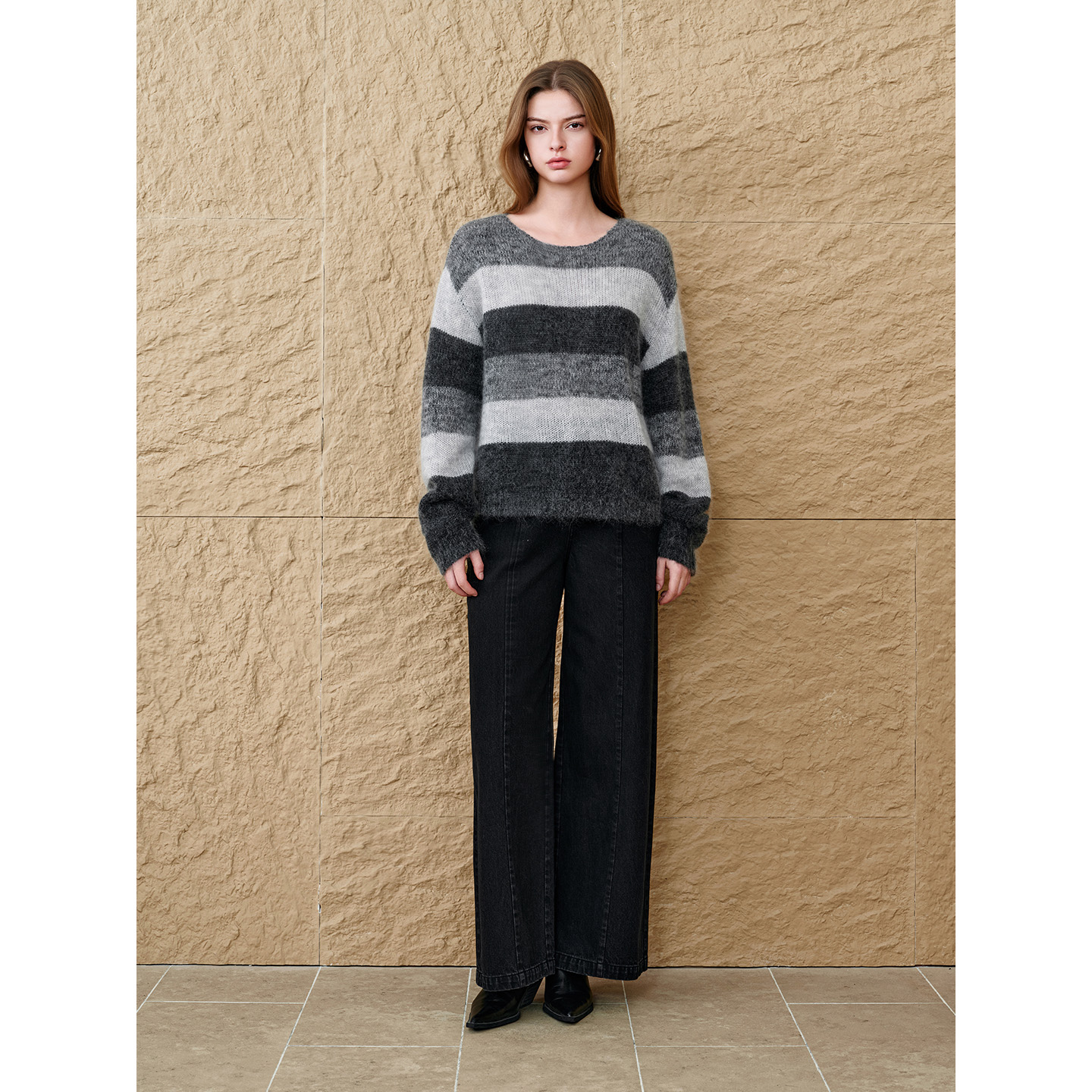 INSUN恩裳专选2025冬季圆领拼色宽松落肩毛针织衫9C65506220
