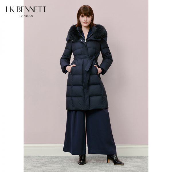 LK BENNETT|2025年新款加厚保暖大毛领连帽修身显瘦羽绒服LKBTIA64201