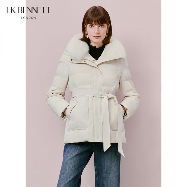 LK BENNETT|2025年新款连帽鹅绒狐狸毛领系带羽绒服LKBTIA64202