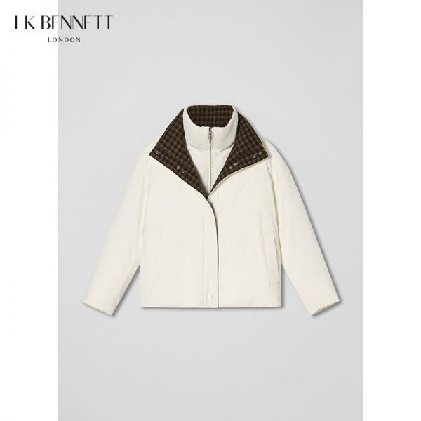LK BENNETT|2025年新款格纹拼接白鹅绒立领羽绒服LKBTIA64204