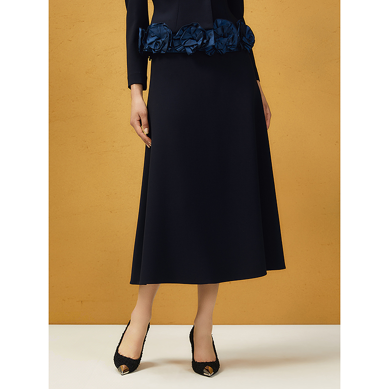 Song of Song歌中歌2025冬季新品优雅藏蓝美丽诺羊毛半裙5C35550030