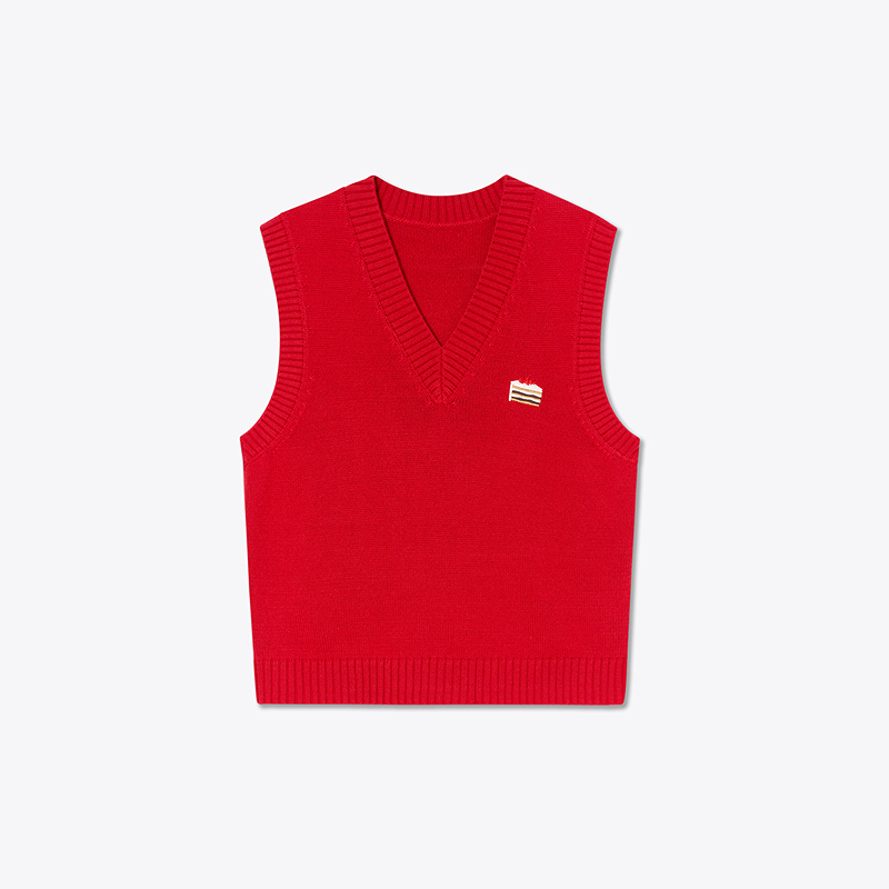 ToyzY2025冬季红色氛围感蛋糕刺绣V领马甲背心ZC35504020