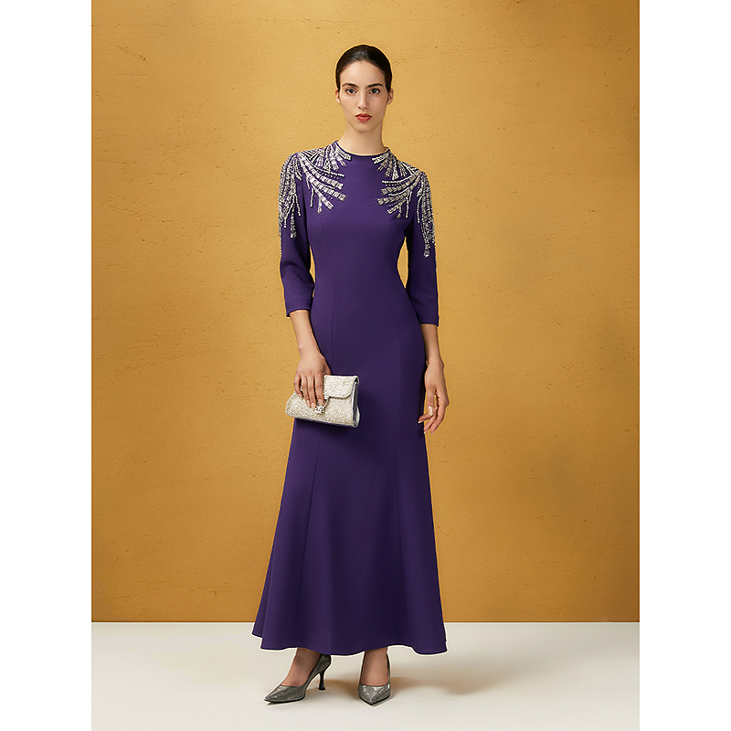 Song of Song歌中歌2025冬季皇家紫甄奢钉珠装饰礼服连衣裙5C65505076