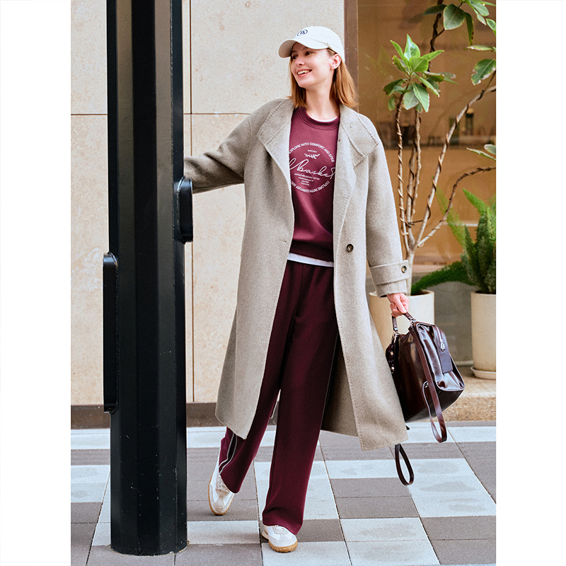XII BASKET十二篮专选25冬新款奢感立领中性风长款羊毛桑蚕丝大衣7C65580200
