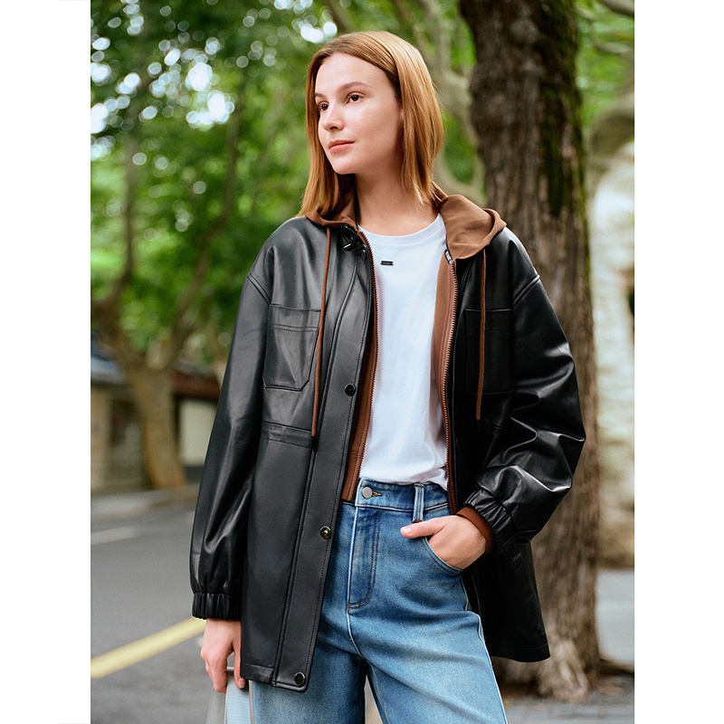 XII BASKET十二篮专选25冬新款时髦中长款抽绳收腰小立领羊皮风衣外套7C65509180