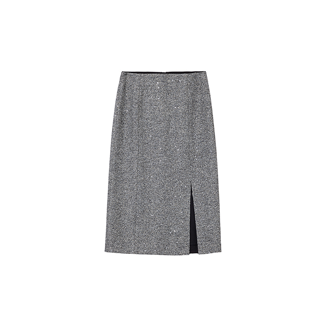 Lumsonare琅颂2025冬季小香风粗花呢H型开叉半身裙 9CY5550130