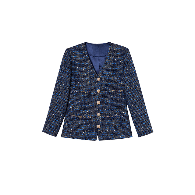 Lumsonare琅颂2025冬季小香风粗花呢V领外套 9CY5510150