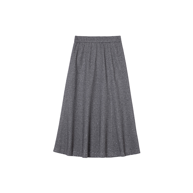 Lumsonare琅颂2025冬季羊毛混纺烫钻太阳摆半身裙 9CY5550160