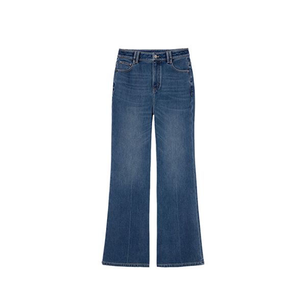 Lumsonare琅颂2025冬季休闲高腰微喇弹力牛仔裤 9CY5520118