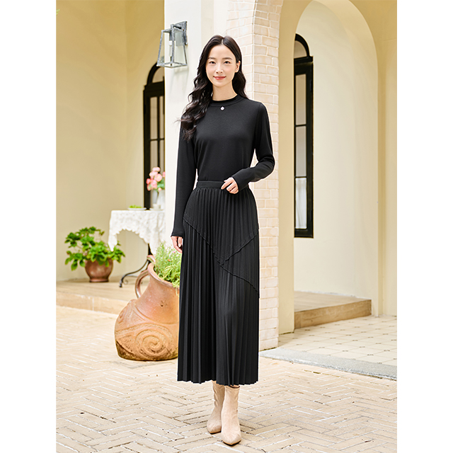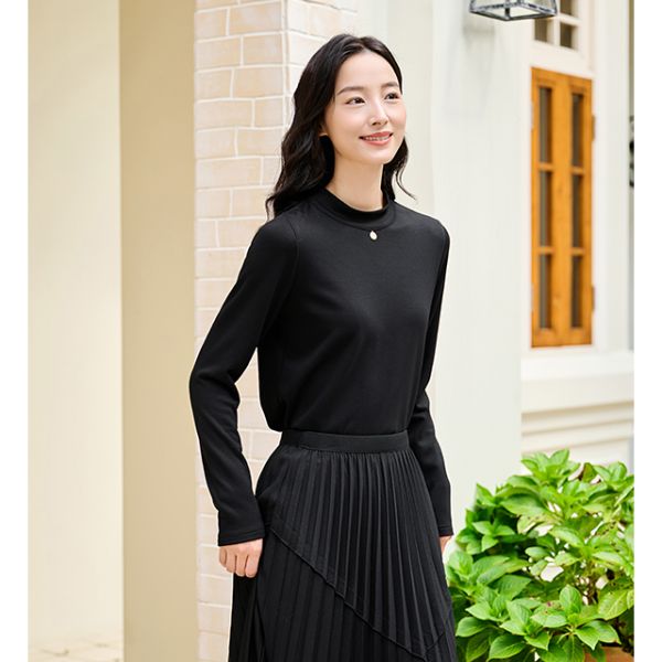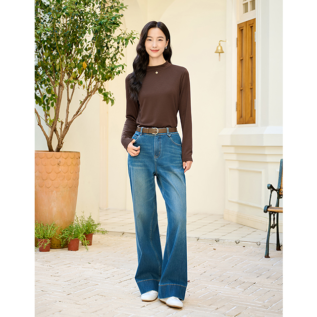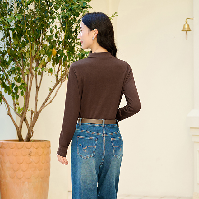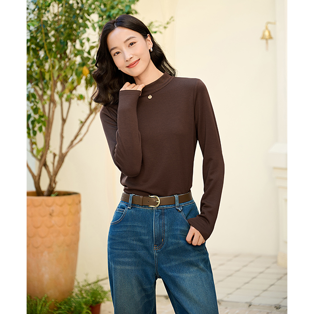 Lumsonare琅颂2025冬季羊毛混纺半高领金属扣针织衫 9CY5560020