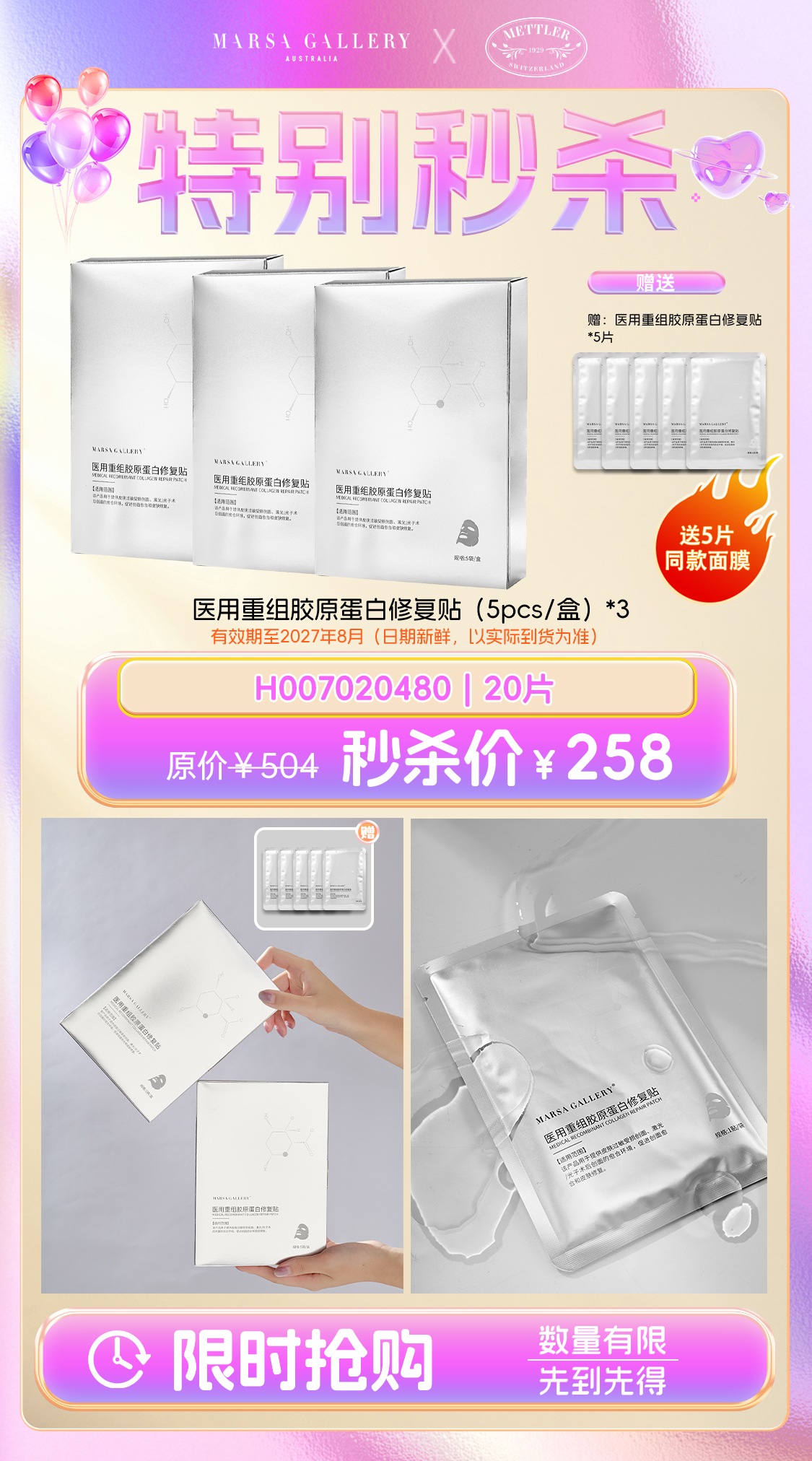 玛莎格芮医用重组胶原蛋白修复贴5片盒装(3盒)H007020480
