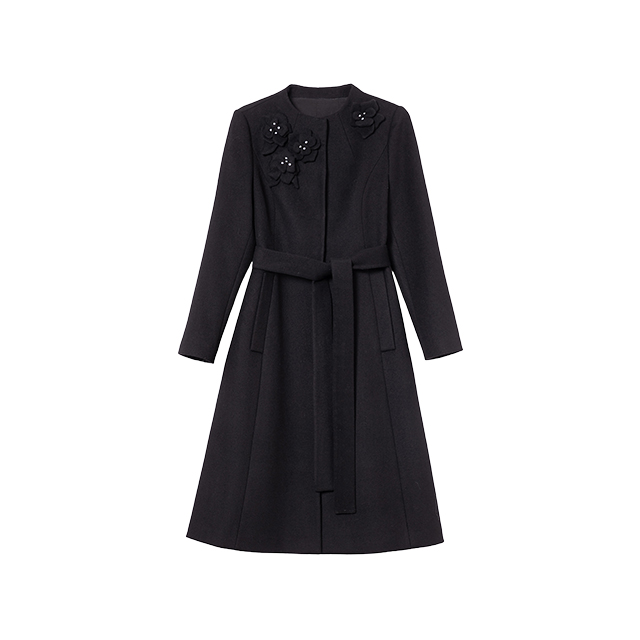 Lumsonare琅颂2025冬季羊绒羊毛手工立体花收腰A摆大衣 9CY5580160