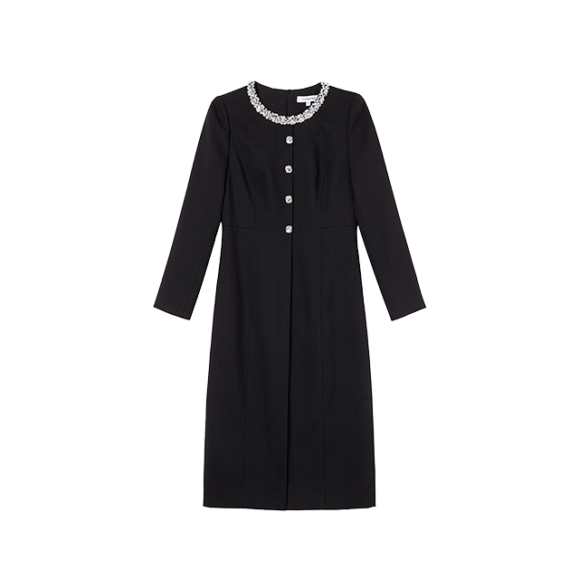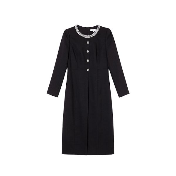 Lumsonare琅颂2025冬季轻复古风假门襟X型连衣裙 9CY5505250