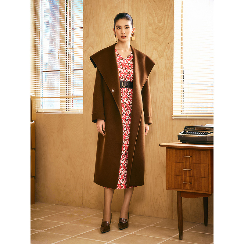 【1996系列】YINER音儿2025冬季新款羊毛羊绒混纺披肩翻领大衣