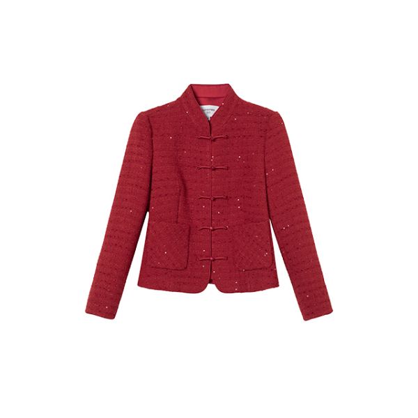 Lumsonare琅颂2025冬季新中式羊毛混纺盘扣立领外套 9CY5510180