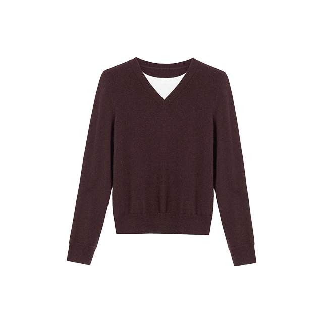 Lumsonare琅颂2025冬季复古羊毛羊绒假两件拼接毛织衫 9CY5506690