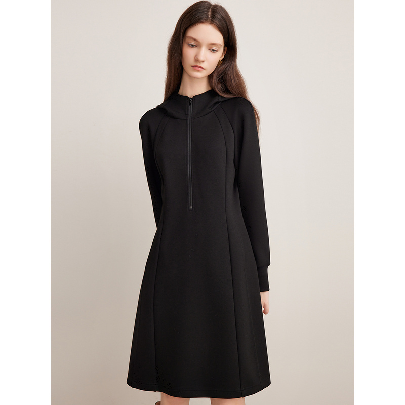 Goodland美地2024冬季新款法式轻运动连帽卫衣式休闲连衣裙