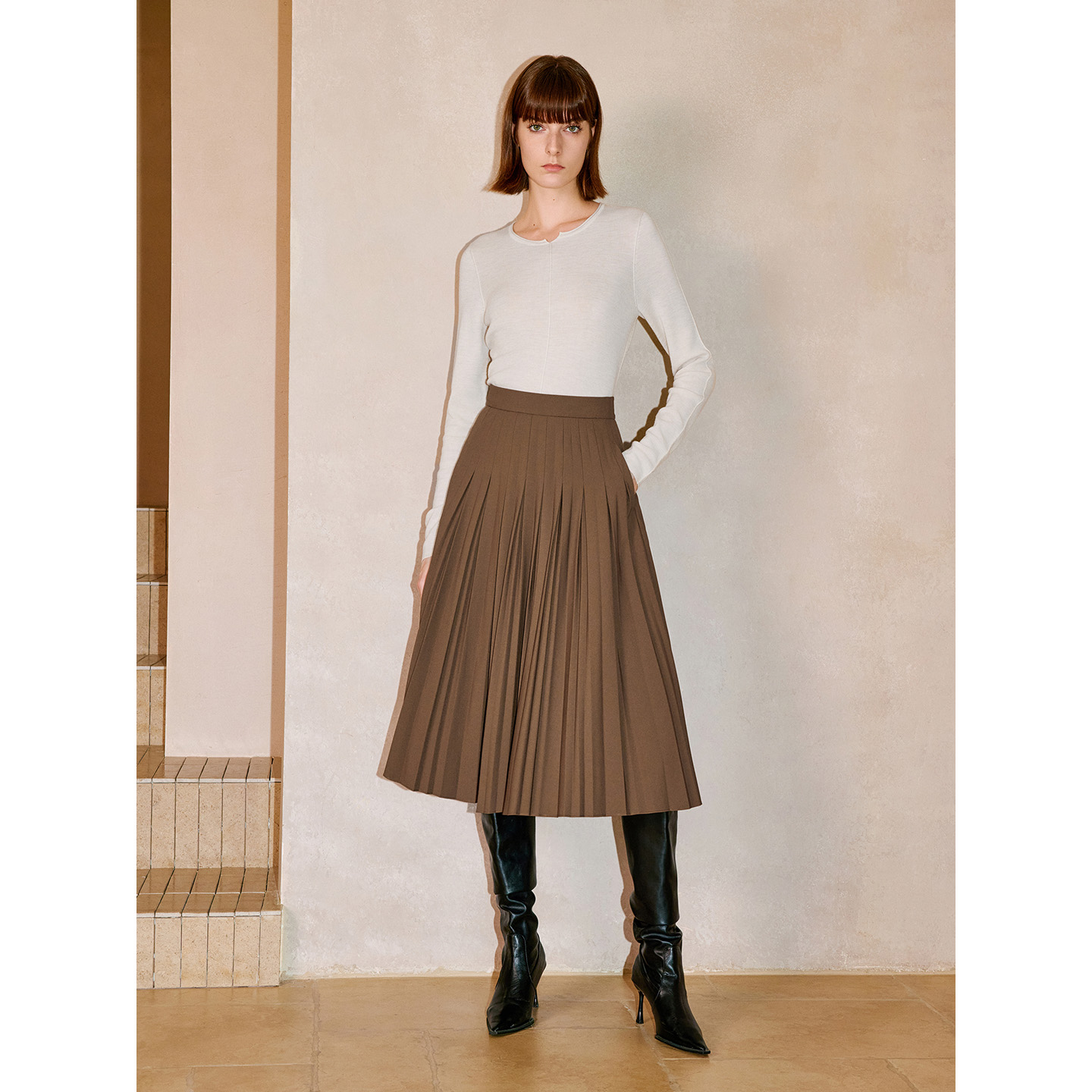 INSUN恩裳专选2025冬季不对称修身美丽诺羊毛衫9C65506360