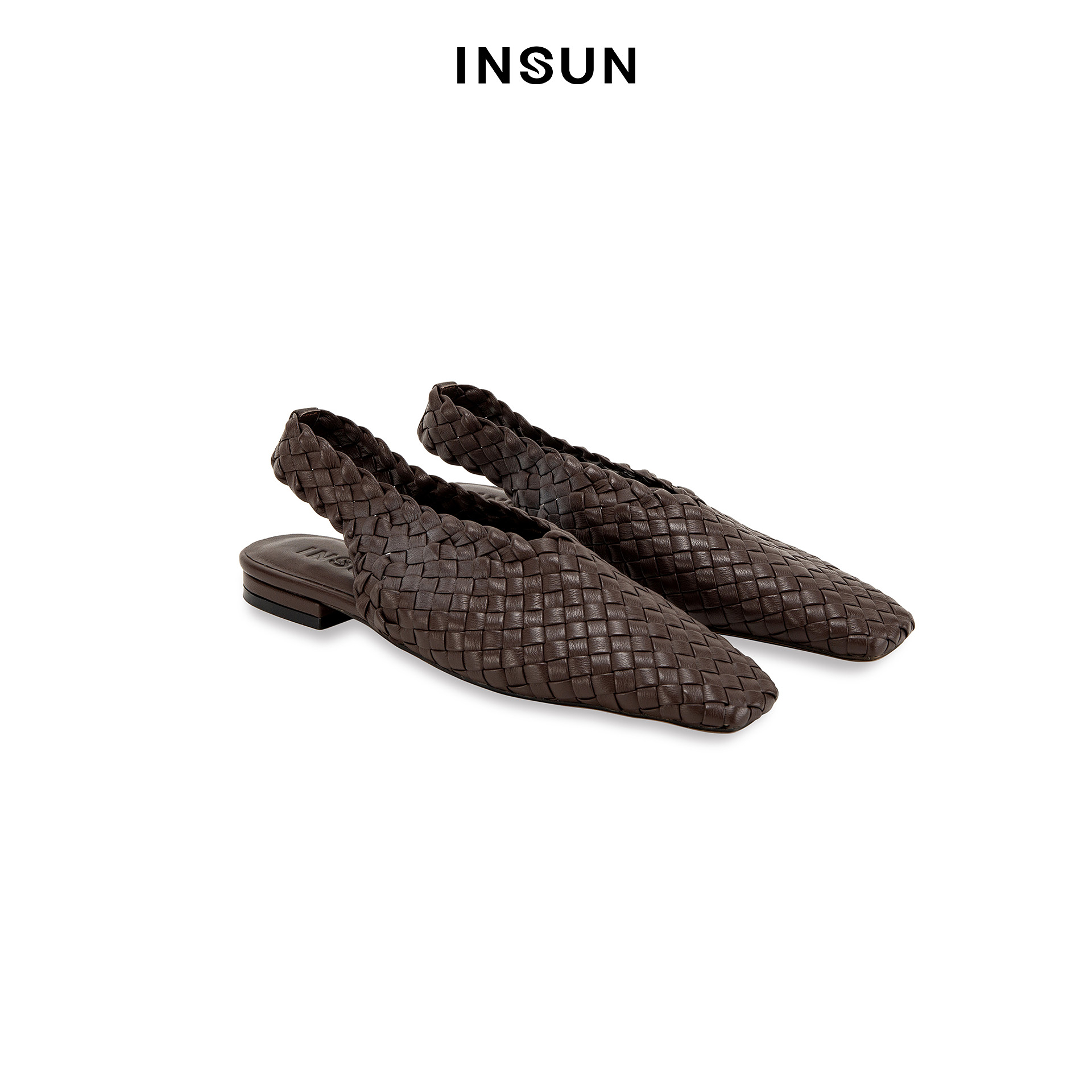 INSUN恩裳2026春复古风羊皮革方头平底鞋9C36192030