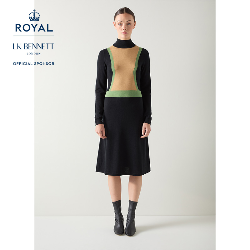 【皇家赛马会】LK BENNETT|2025年新款圆领撞色减龄连衣裙LKBTIA51024