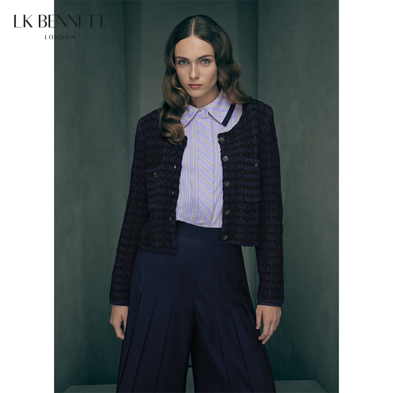 LK BENNETT|2025年新款深蓝圆领针织开衫外套LKBTIA74007