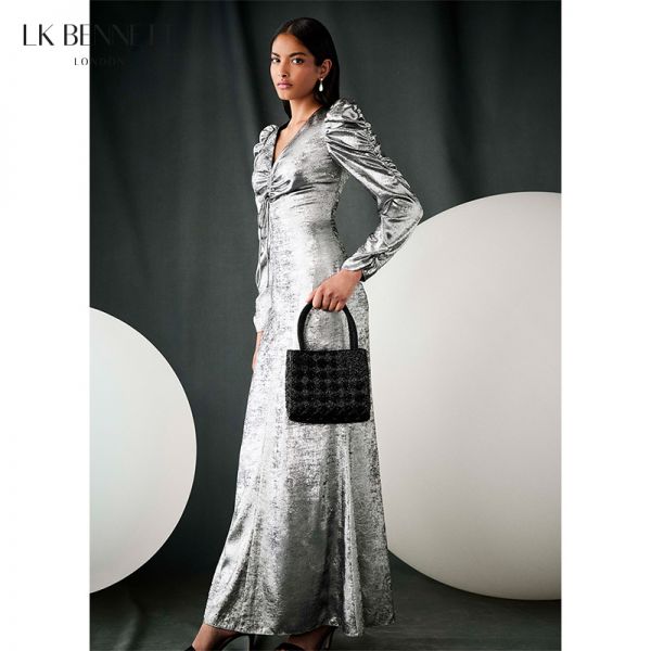 LK BENNETT|2025年新款V领收腰艺术褶轻奢丝绒连衣裙LKBTIA51040