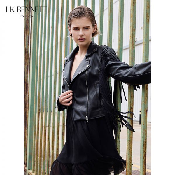 LK BENNETT|2025年新款复古短款翻领流苏皮衣外套LKBTIA54018