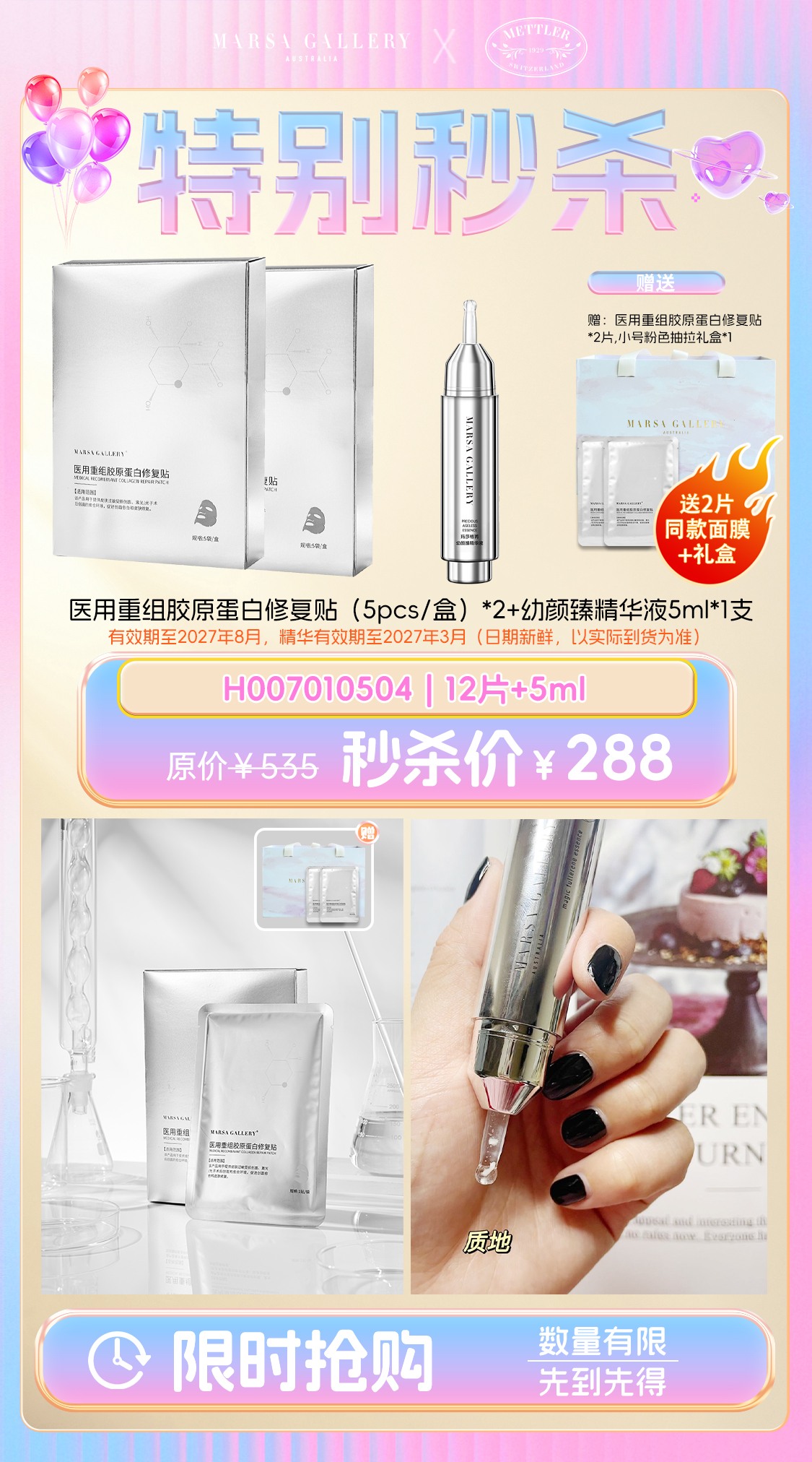 玛莎格芮精选套装(医用重组胶原蛋白修复贴2盒幼颜臻精华5ml1支)H007010504