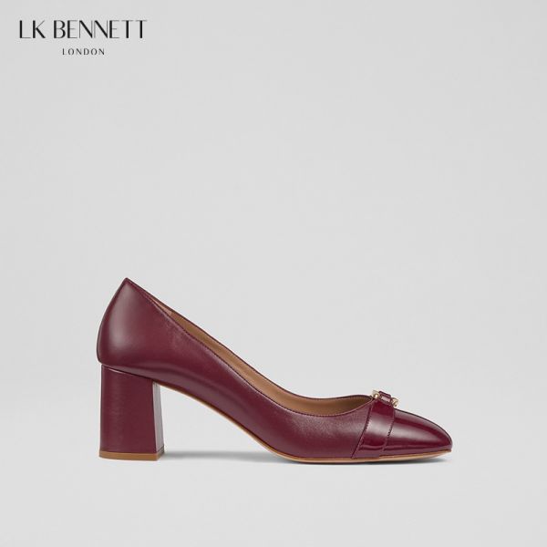 LK BENNETT|2025年新款圆头粗跟金属扣装饰6cm酒红色单鞋LKBTIA01009