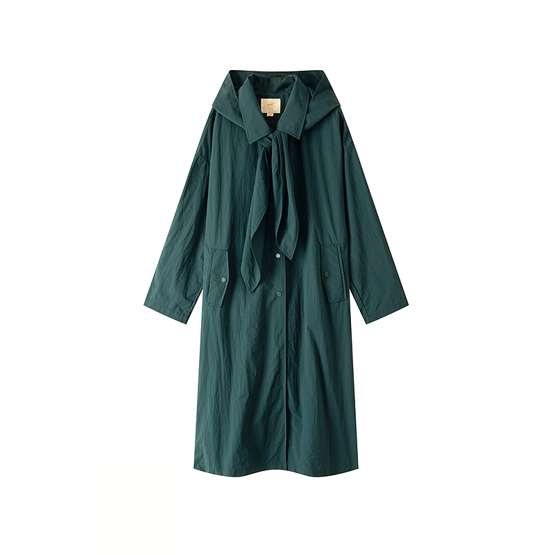 XII BASKET十二篮26春新款解构感拼接廓形风衣连帽通勤长风衣外套7C36107380