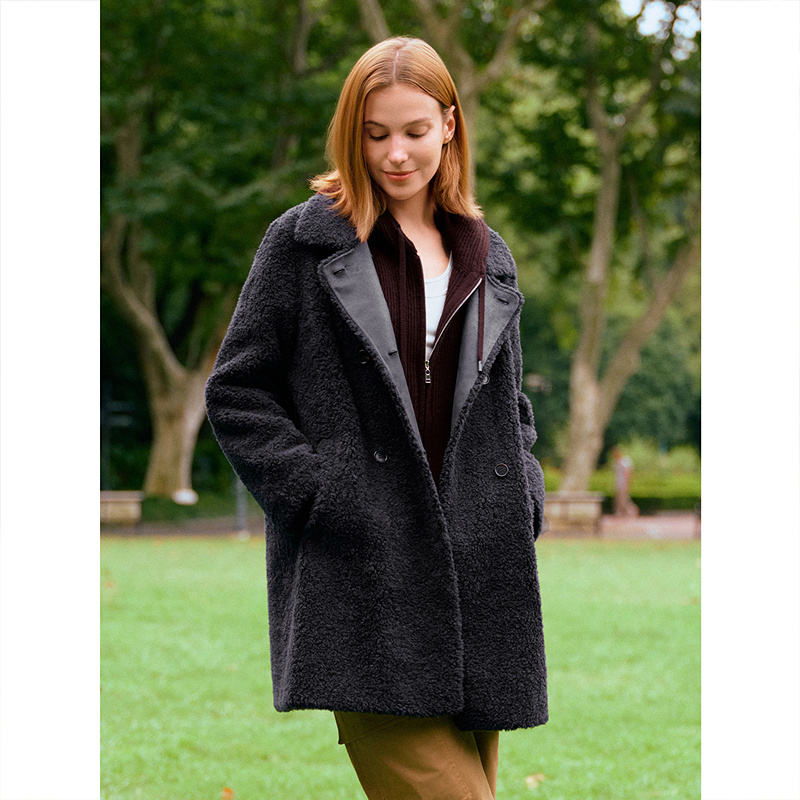 XII BASKET十二篮专选25冬藏蓝绵羊毛外套简约廓形保暖百搭轻奢贵气通勤大衣7C65580300