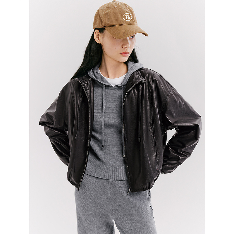 XII BASKET十二篮26春新款黑色羊皮夹克女酷飒机车风气质短款真皮衣外套7C36109030