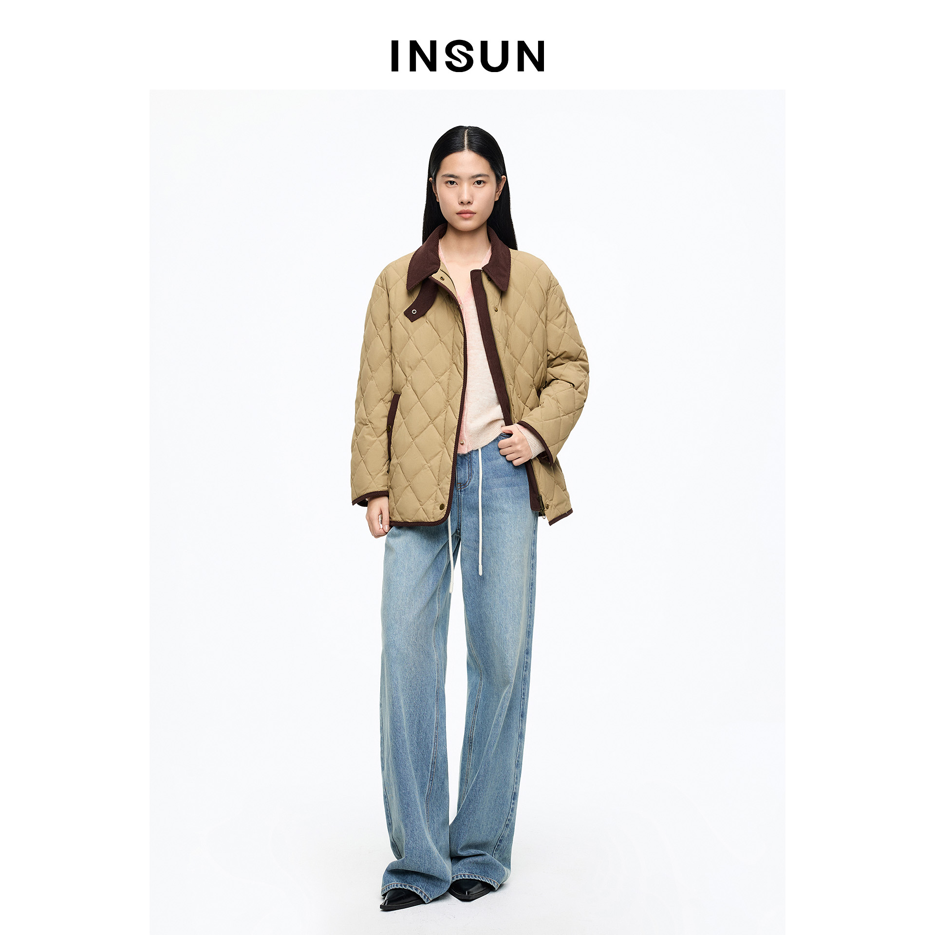 INSUN恩裳专选2026春季巴恩风菱形格宽松轻薄羽绒服9C66108520