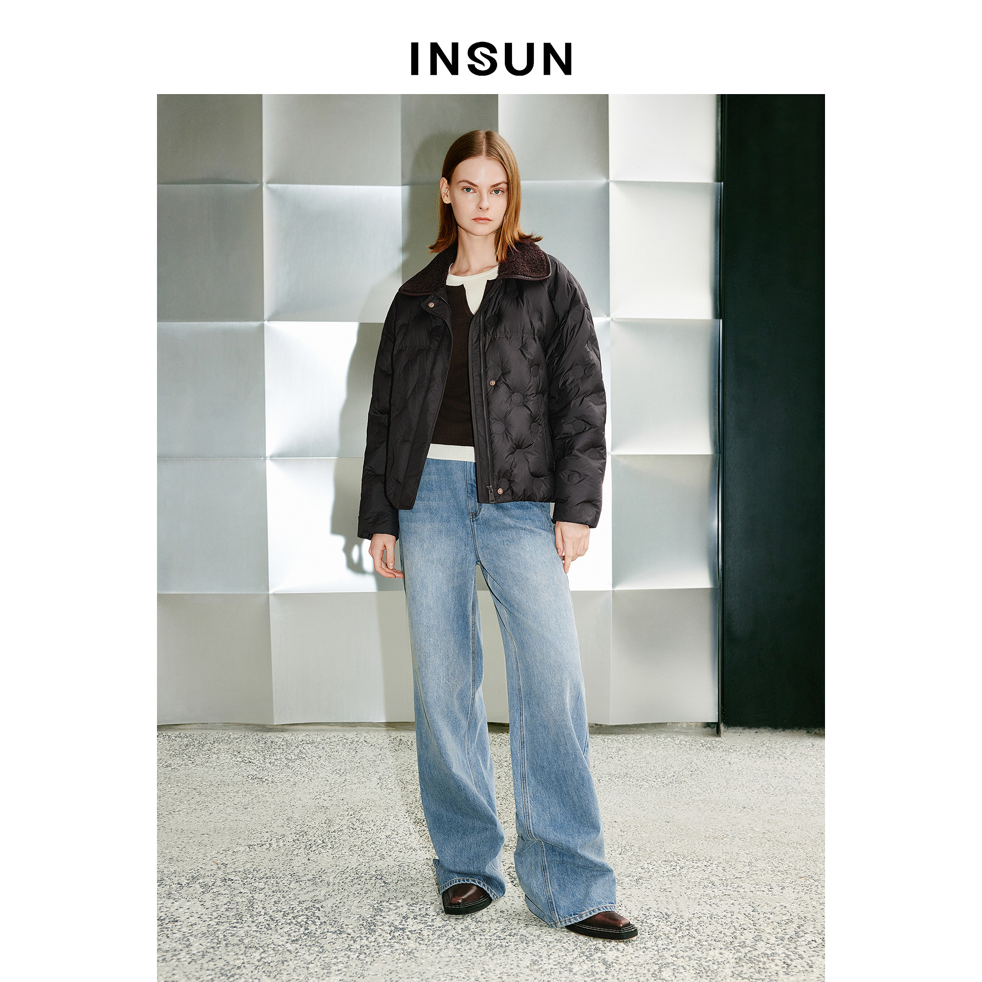 INSUN恩裳专选2026春季皮毛一体翻领落肩袖鹅绒短款羽绒服9C66108570