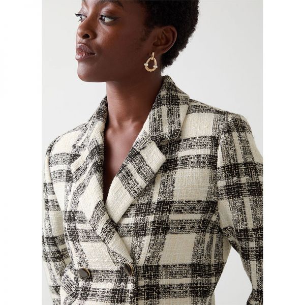 LK bennett黑白格纹高级感小西装2025冬新款双排扣通勤商务短外套