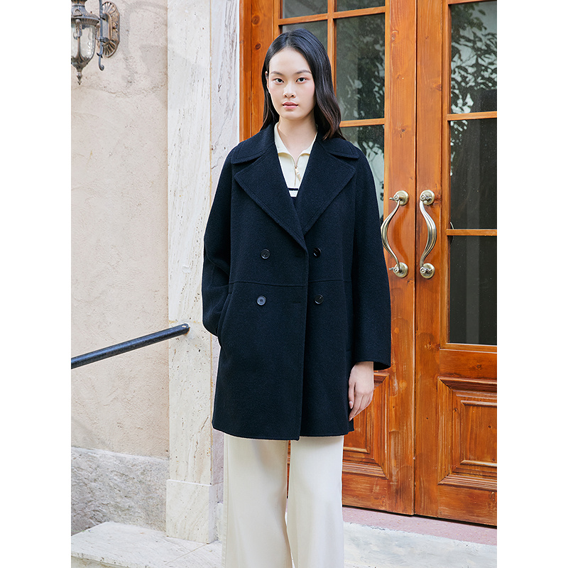 YINER音儿专选2025冬季新款法式西装领羊毛混纺双面呢大衣外套8C65580366