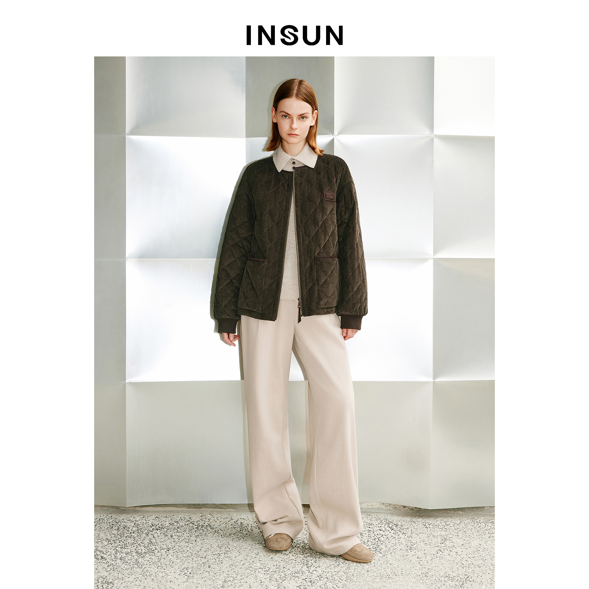 INSUN恩裳专选2026春季复古松弛感绒朵菱格短外套9C66108620