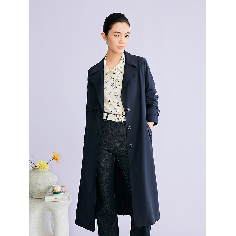 YINER音儿2026春季新款时尚西装翻领可拆卸腰带中长款风衣外套8C36107060
