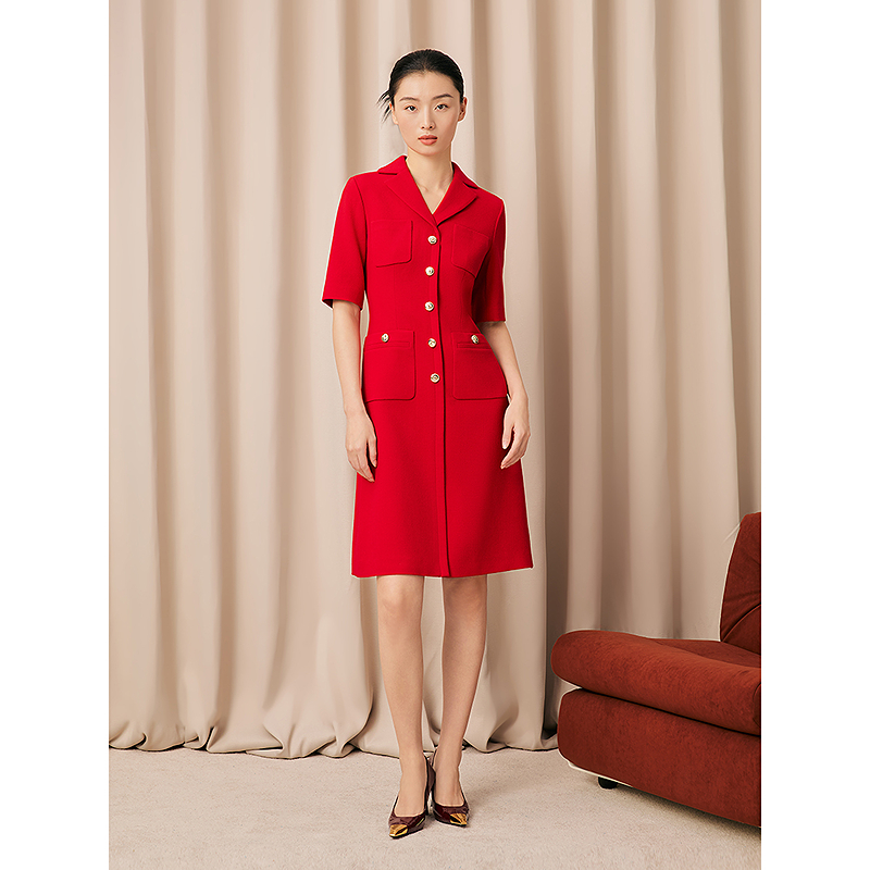 Song of Song歌中歌2026春季中国红100%绵羊毛连衣裙5C66105170