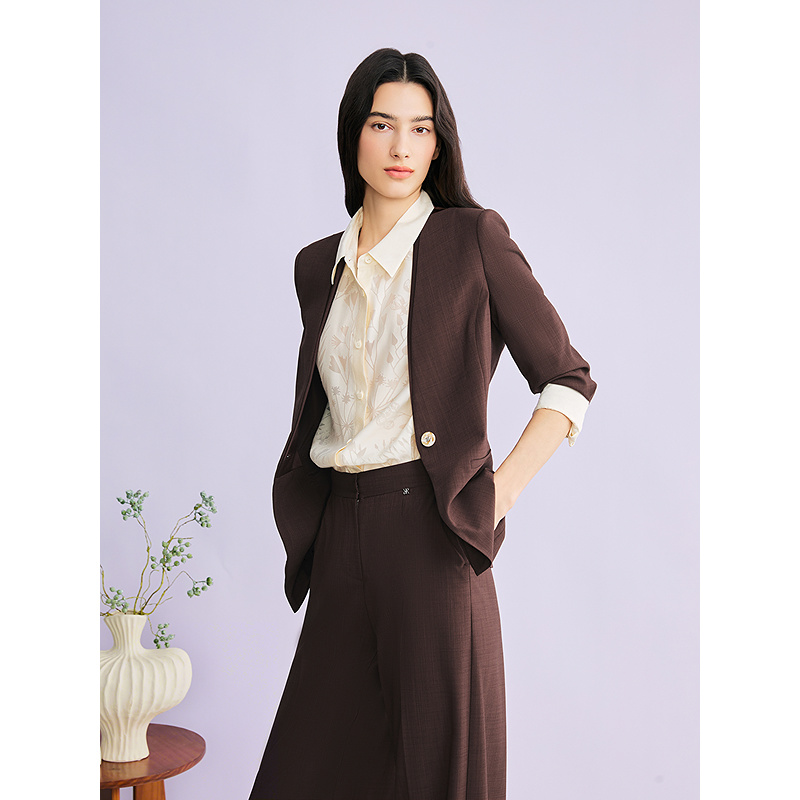 YINER音儿2026夏季新款时尚通勤深V领醋酸拼接缎面一粒扣修身西装8C36210320