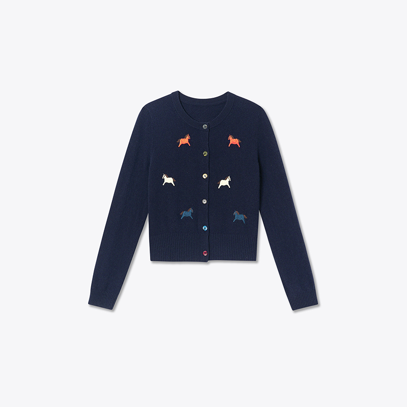 ToyzY2026春季新款彩色小马图案刺绣短款羊毛针织开衫ZC36106820