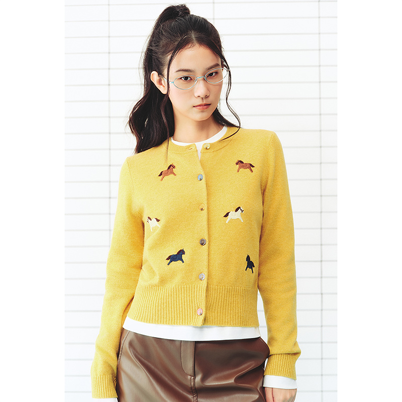ToyzY2026春季新款彩色小马图案刺绣短款羊毛针织开衫ZC36106820