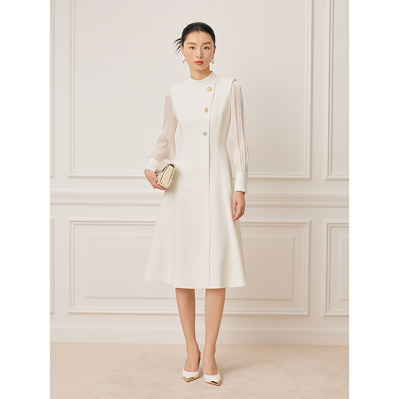 Song of Song歌中歌2026春季优雅白钉珠装饰连衣裙5C66105160